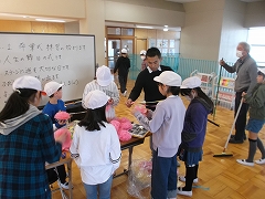 南部支部より宮内様と野口様がお越しになり,子どもたちへ直接手渡してくださいました。