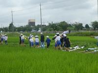 7月17日(水) 5年生は午前中にいきいきクラブの方に学校へ来ていただき、水田に立てるかかし作りを行いました。