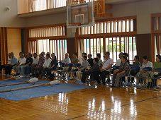 まず,到着式を行います。ホテルの方から施設利用上の注意点や避難経路などについてお話しいただきました。その後小林先生から健康についてのお話がありました。