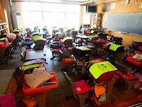 地震警報を聞くと、どの教室も素早く机の下に避難することができました。