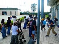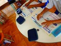 ソーシャルディスタンスを確保して、検診の順番を待ちます。