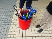 バケツいっぱいに入っていた傘が、子ども達の下校後はこんなに少なくなりました。