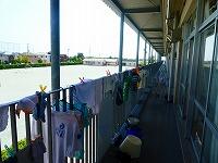 洗い終わったら、しばらく脱水をして教室のテラスで乾かしました。