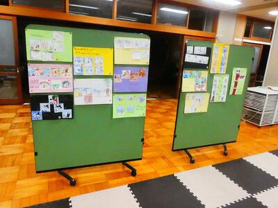 図工の学習で絵をつなげてお話を作ったのものです。