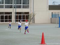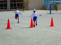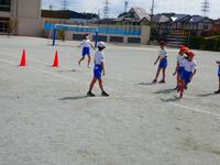 チーム全員がバトンパスするのでなく、コーンにタッチしたときにスタートする、感染症の対応を考えたリレーでした。