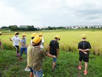 今年度は、感染症を考慮し、子どもたちは残念ながら稲刈りは行うことはできませんが、色の変わった田んぼを観察し、その変化を感じていました。