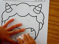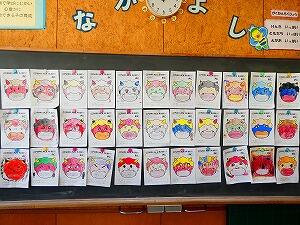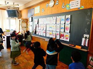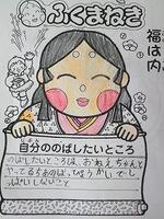 昨日のホームページで、1・2年生が節分とからめて学習を進めている様子をご覧いただきましたが,今日は昨日書いたワークシートを利用して豆まき(紙を丸めたもの)を行いました。