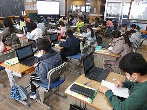 まずは、3年1組と1年1組で展開した、市内小中学校の先生方に向けてのオンラインによる授業公開です。