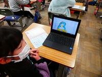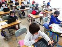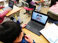 今日は1年生がchromeBookに慣れるため、楽しみながら学習を進めていました。