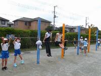 4年生の体育では、体力テストのための練習を行っていました。スポーツの秋ですね!