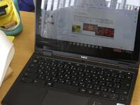 「先生!自分の名前書いても良いですか?」2年生の教室から感激した声が聞こえてきました。パソコン入力の手書きで文字入力ができることを知り子ども達は『あいうえ…』だけでなく書きたいことを入力したい気持ちが押さえられなかったようです。