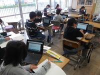 身の回りにある物を使って、リズム遊びをしていました。クロームブックも活用していて、子どもたちはいろいろ扱って学習していてすごいですね。