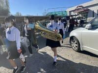 4年生が校庭でゴミ袋を抱えて何やらやっています。近付いてみると・・