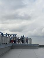 最高の景色を観ながら、美味しいお弁当を食べています。みんな笑顔が溢れています。