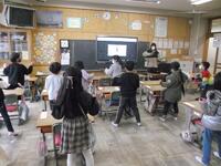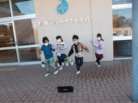 豆まきばかりしていたわけではありません。2年生は、大きい長さの学習に取り組みました。物差しを使って体の長さを測りました。物差しが足りなくなり、友達と協力をして測っていました。ICTを活用した学習も大切ですが、道具を使ったアナログの学習も大切にしています。
