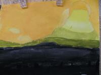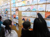 富士山展が、校内で始まりました。子どもたちが冬休みに描いてきた作品を展示しています。