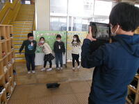 1年生は、卒業を祝う会に向けて撮影をしていました。みずき小学校のいろいろな場所で何をしているのでしょう?
