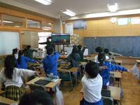 2年生の教室では、今日もシトラスリボン活動に取り組んでいました。また、国語の学習で、昔遊びの説明の学習を行うために、教室で様々な道具を使って遊び方の確認をしていました。