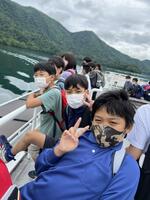 中禅寺湖に着いたら、なんと晴れました。6年生、強運です。