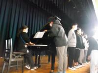 6年生は、体育館で音楽会に向けた歌の練習です。