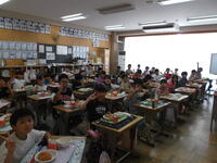 給食の時間に教室をまわると、みずきっ子たちの笑顔がはじけていました。