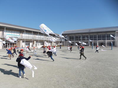また、校庭を走って風を起こし、自分で作った凧が揚がりとても満足そうでした。