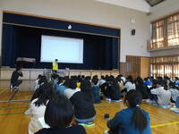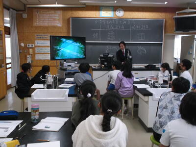 最後に塩水以外でもレモンやミカンで電池を作れることも教えていただき、科学の不思議をたくさん知ることができました。ご来校いただいた北村先生、学生の皆さん、ありがとうございました。