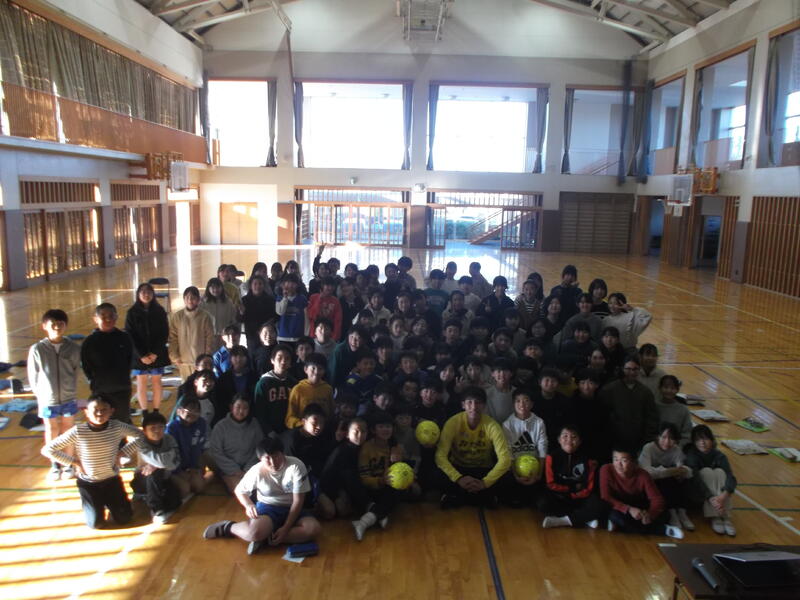 講演後は、松本健太選手にキーパーをやっていただいたり、集合写真を一緒に撮らせていただいたりしました。