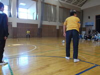 よく飛ぶ紙飛行機の作り方を教えていただき、体育館で飛ばしました。