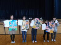 全校朝会の前には、野田市防火コンクールと千葉県教育研究会造形教育部会研究発表大会、子ども県展、少年を非行から守る推進協議会の入賞者がそれぞれ表彰されました。おめでとうございます!
