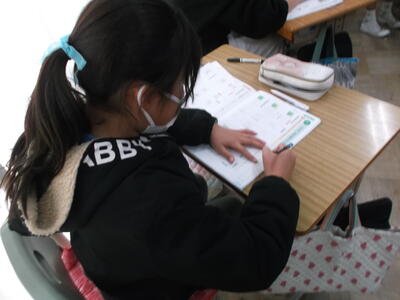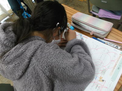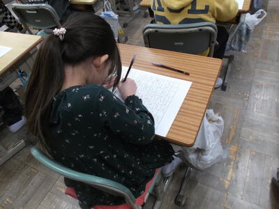 2年生も集中して取り組み、ていねいな字を書いていました。