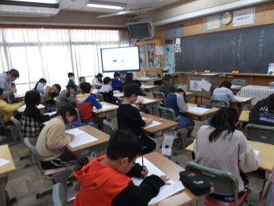 本日は1,2年生の校内書き初め大会(硬筆)が実施されました。