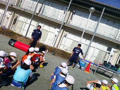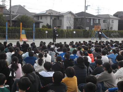 野田警察署生活安全課の方にも来校していただき、避難の様子についてご指導をいただきました。子ども達の真剣に訓練に取り組んでいる様子にお褒めの言葉をいただきました。