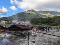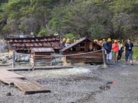 源泉の散策をし、美しい緑と源泉の独特の匂い、そして、地面から湧き出るお湯を楽しみました。