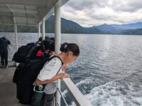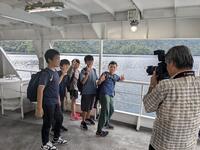 遊覧船では、デッキで風を浴びて風景を楽しんでいます。