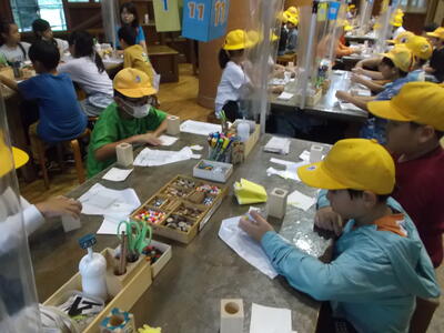 雨が降ったり止んだりの天気でしたが、童話館や子ども美術館での見学を楽しみました。