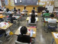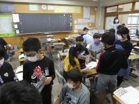 4年生の国語の時間には新しい単元のお話しの感想をマスクをしたままで話し合い活動しました。