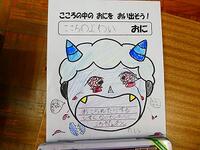 昨日のホームページで、1・2年生が節分とからめて学習を進めている様子をご覧いただきましたが,今日は昨日書いたワークシートを利用して豆まき(紙を丸めたもの)を行いました。