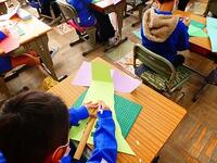 今日は2年生がカッターを使って図工に取り組んでいました。