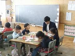 授業後,学生の皆さんと一緒に,給食を食べたり,遊んだりしました。