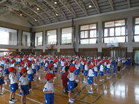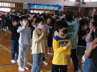 あおいそら運動の善行賞の表彰から始まり、校歌、校長先生、板垣先生のお話、体育委員会、生活委員会の発表がありました。