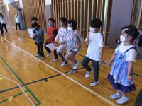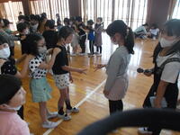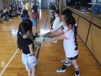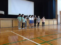 この会は2年生が企画しました。1年生となかよくなるためにクイズをしたり、歌を歌ったり、ゲームをしたりしました。最後には2年生が育てたあさがおの種のプレゼントがありました。