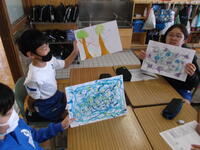 絵の具を上手に使って、世界に一つだけの作品を仕上げました。