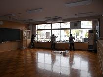 体育館内とそのまわり,校舎まわり,特別教室の窓,中庭,側溝,庭木の剪定等,