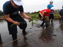 初めて水田に入った子どもたちは,その感触に大きな声をあげていました。