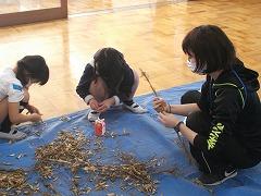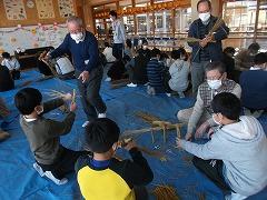 また,わら細工体験もしました。なわをなう作業はとても難しかったようですが,