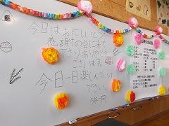 今日は,呼びかけと合唱,手作りのペン立てのプレゼントで,