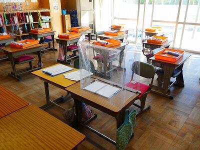 教室でも感染症対策のために飛沫防止ガードを使用し、机の距離を離しています。