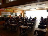 3~6年の保護者のみなさんは、校長室前の階段を使って2階へ移動していただきます。