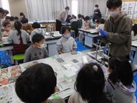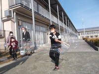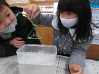 2年生が理科大授業に参加しました。シャボン玉を作る学習で元気いっぱい遊びました。友達と協力しながら、実験することができました。初めての実験に目を輝かせていました。